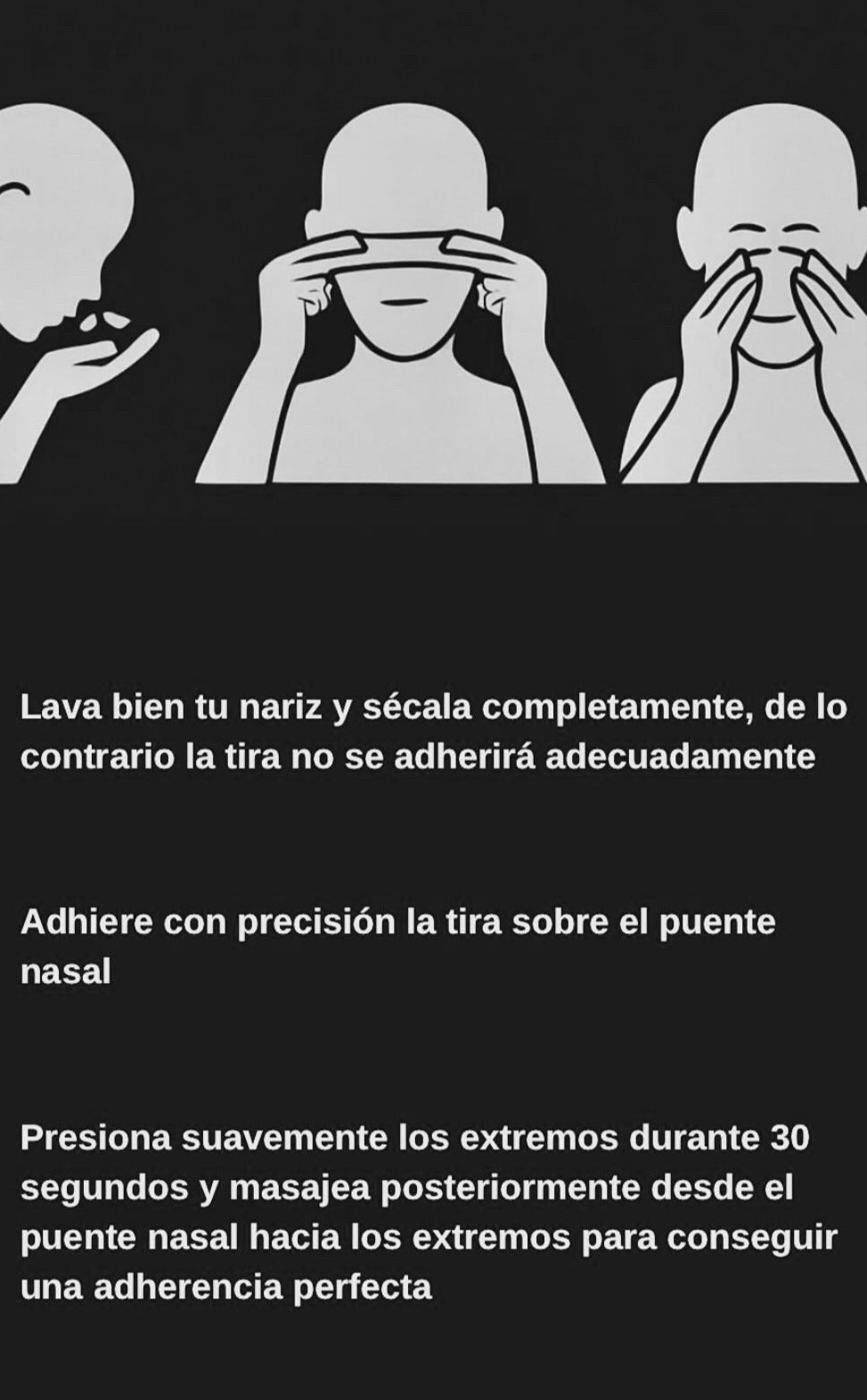 Para que tu tira nasal funcione correctamente y no desperdicies ninguna, es fundamental colocarla sobre la piel limpia, seca y libre de grasa.